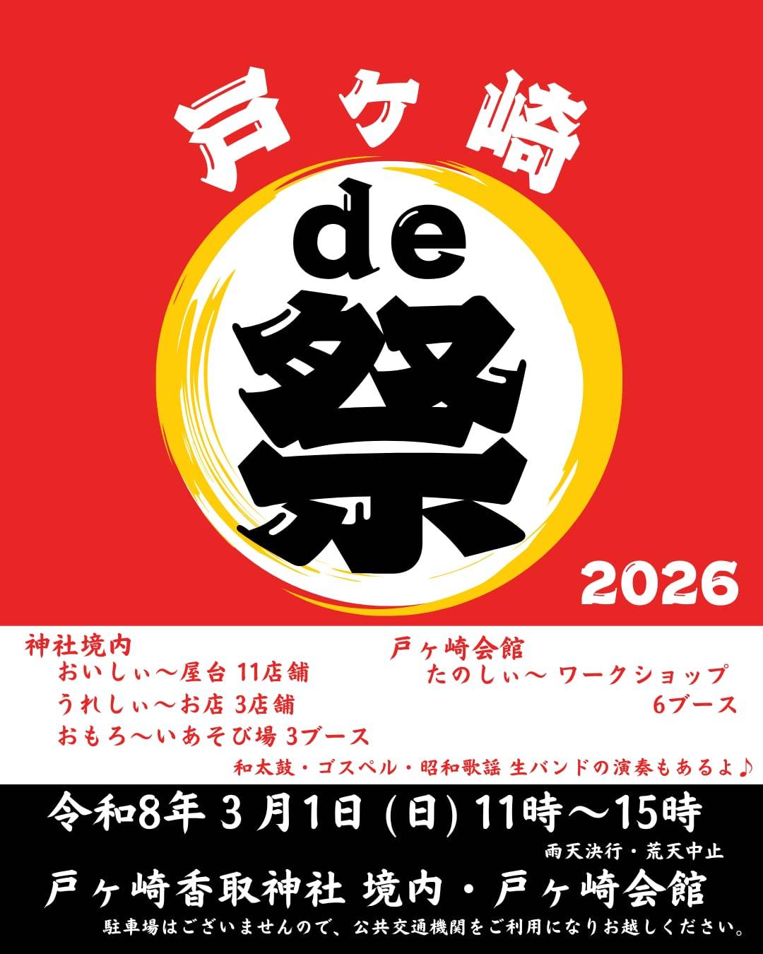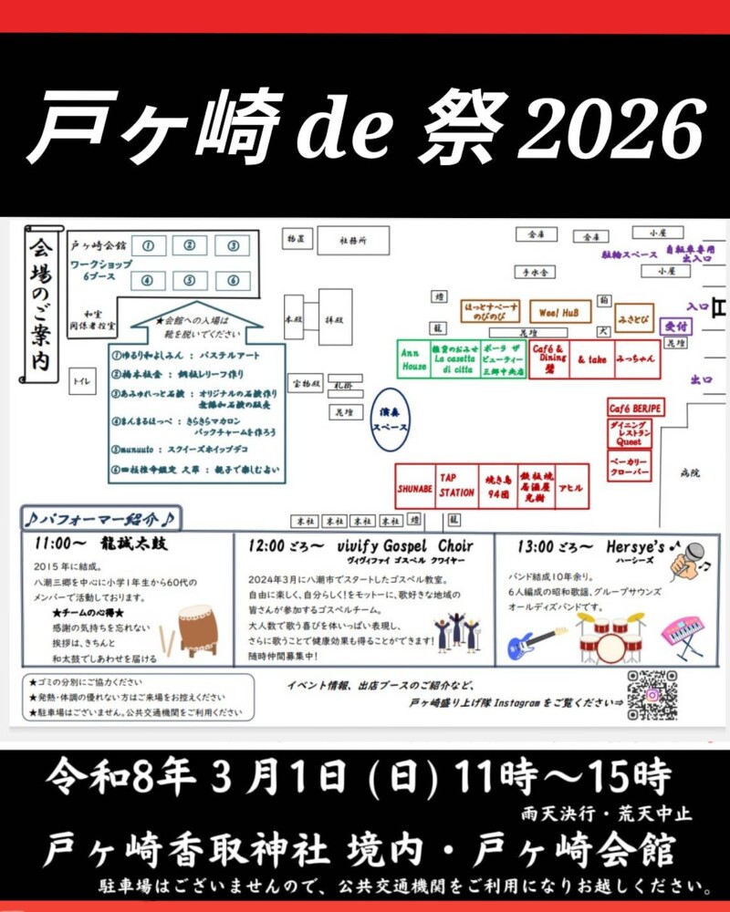 2026年3月1日に戸ヶ崎香取神社で『戸ヶ崎de祭』が開催!みさとぴも出店するよ
