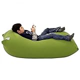 縦に置いて中のビーズの厚みをコントロールすることで無断階リクライニングのソファになるし、横に置いて座ればラブソファになる。