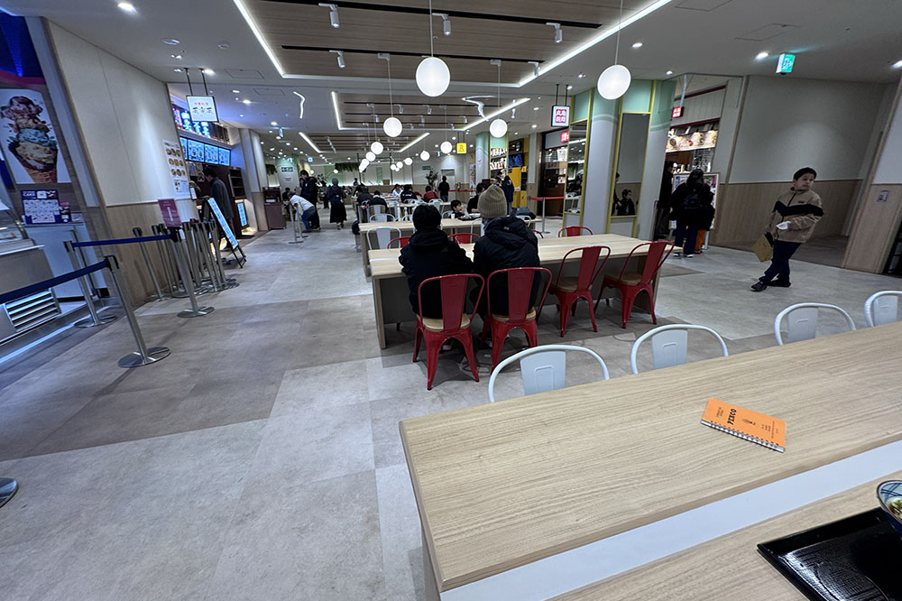 週末の11:55のフードコートの混み具合はこんな感じ。