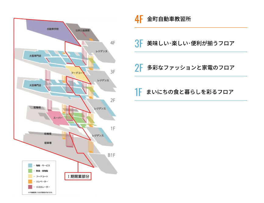 MARK IS 葛飾かなまちは4フロア構成。1Fはスーパー、2Fはファッション&家電・3Fはフードコード&専門店。