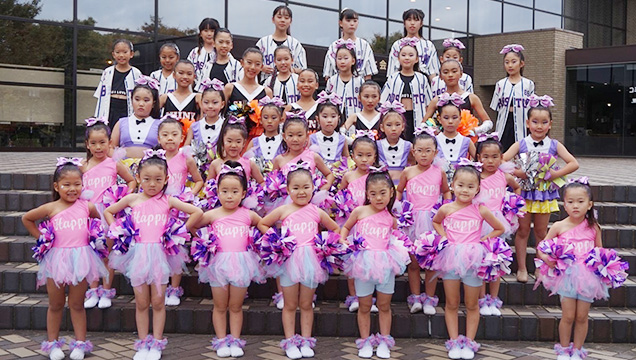 チアダンスを見て、笑顔にそして元気になってもらう為、日々練習に励んでいます。園児クラス、小学生低学年クラス、kpopの3チームで会場を盛り上げますので、ぜひご覧ください!
