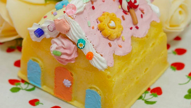 手のひらサイズのスクイーズにソースをぬり、ホイップを絞り、パーツを飾ります。