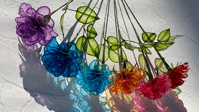 アメリカンフラワーはお日さまに当たると、ステンドグラスのように影ができ、とっても癒されます♡