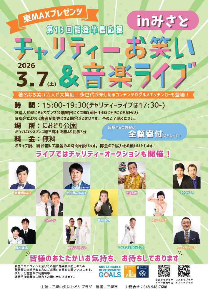 イベント:第13回能登半島応援 東MAXプレゼンツ チャリティーお笑い&音楽ライブ